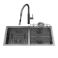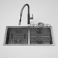 Caroma Urbane II Double Bowl Sink with Liano II Pull Out Sink Mixer Gunmetal