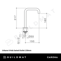 Caroma Urbane II Hob Swivel Outlet 150mm Brushed Nickel