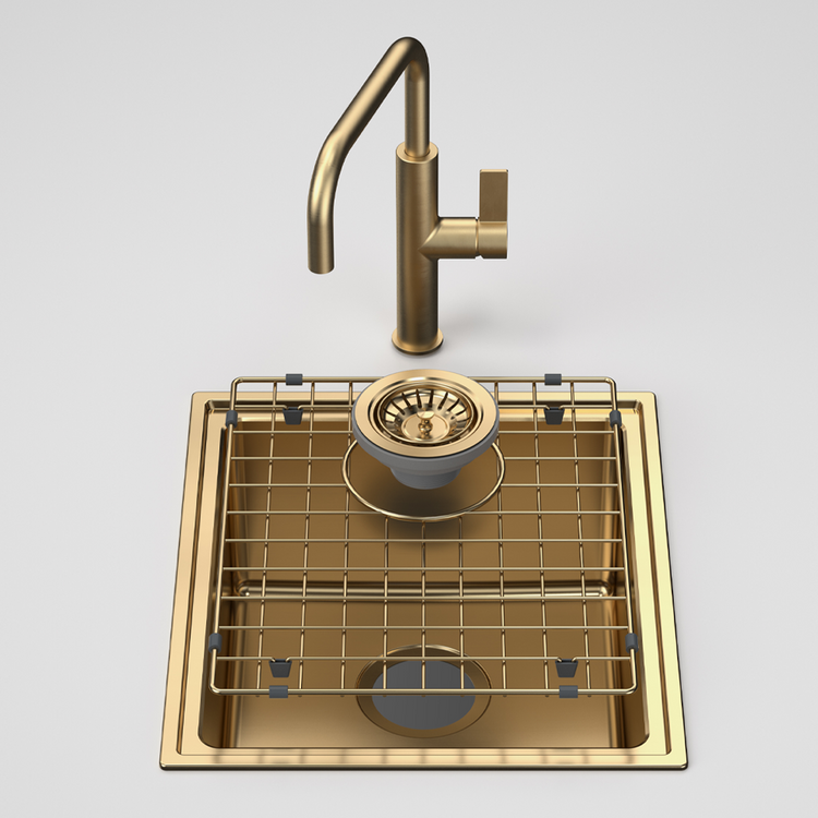 Caroma Urbane II Single Bowl Sink with Urbane II Sink Mixer Brushed Brass