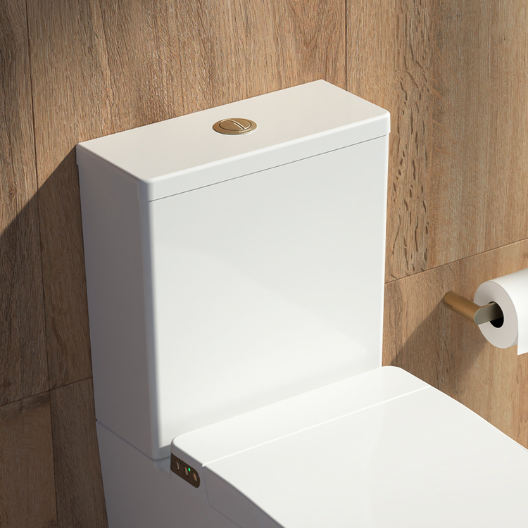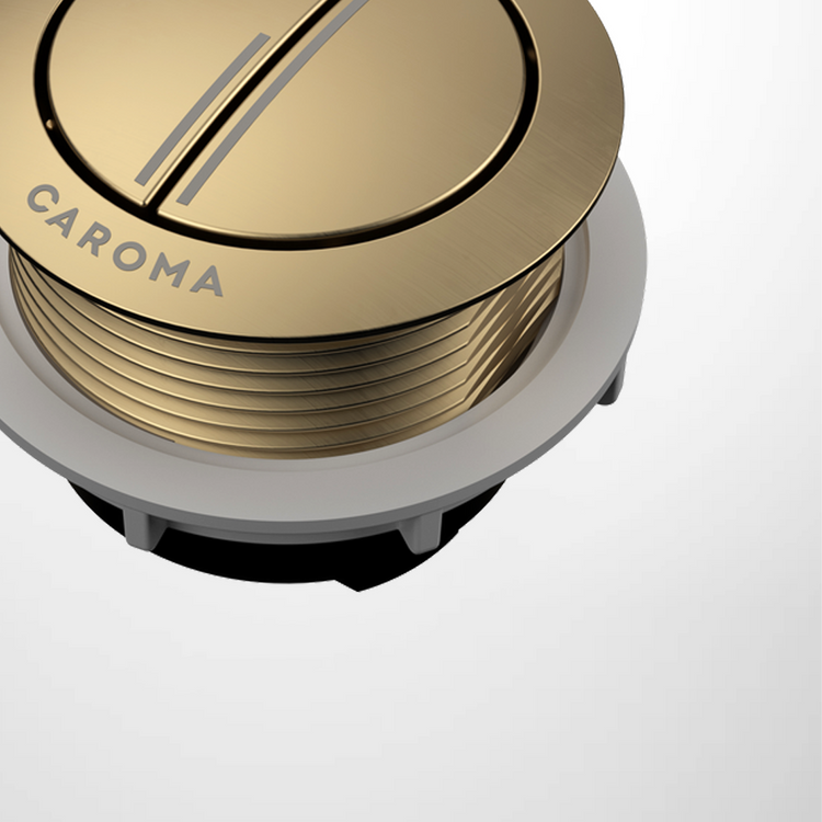 Caroma Urbane II Wall Faced Close Coupled Flush Button Brushed Brass