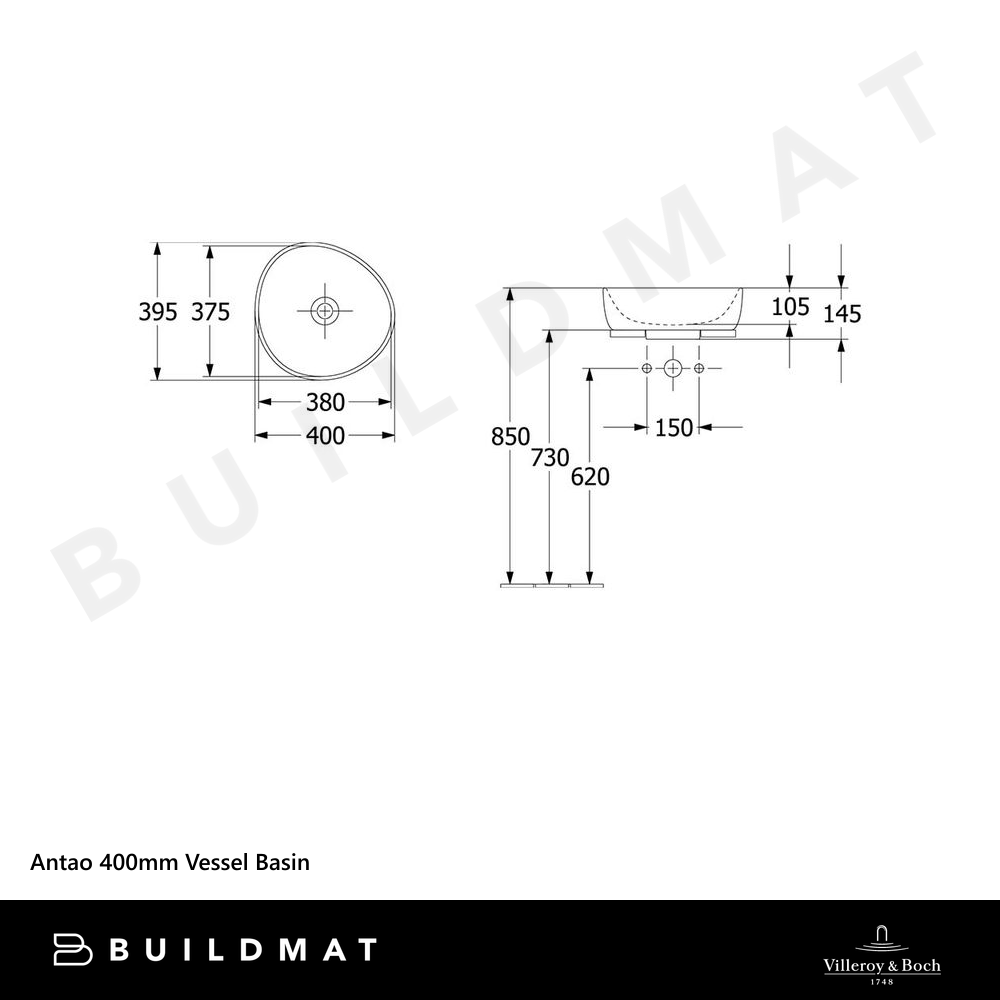 Discover the fusion of nature-inspired design and cutting-edge technology with the Antao 400 Vessel Basin in Almond by Villeroy & Boch. This 400mm basin, crafted from innovative TitanCeram, features a... Read more