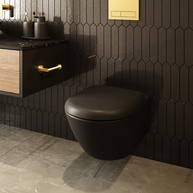 Experience the fusion of nature and design with the Antao TwistFlush Wall Hung Pan & Seat in Pure Black by Villeroy & Boch. Reflecting the depth and mystery of a moonlit night, this toilet features a rounded, soft-close lid, perfectly capturing the serene essence of nature. Its innovative TwistFlush technology ensures an efficient and powerful flush. The Pure Black finish brings a bold, sophisticated contrast to your bathroom. Engineered with CeramicPlus for effortless maintenance and hygiene and awarded a 4-star WELS rating for water efficiency, this wall-hung design gives the impression of floating, enhancing the elegance and the spaciousness of your bathroom sanctuary.