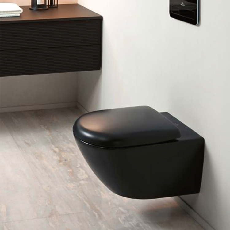 Villeroy & Boch Antao TwistFlush Wall Hung Toilet Pan and Seat Pure Black