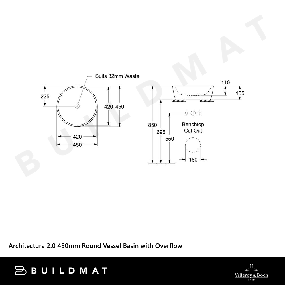 Villeroy & Boch Architectura 2.0 450mm Round Vessel Basin with Overflow Alpine White