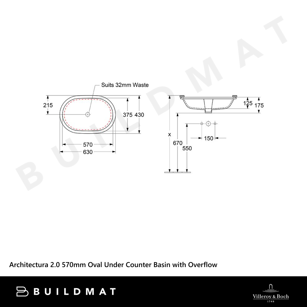 Villeroy & Boch Architectura 2.0 570mm Oval Under Counter Basin with Overflow Alpine White