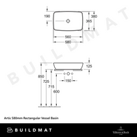 Villeroy & Boch Artis 580mm Rectangular Vessel Basin Coal Black