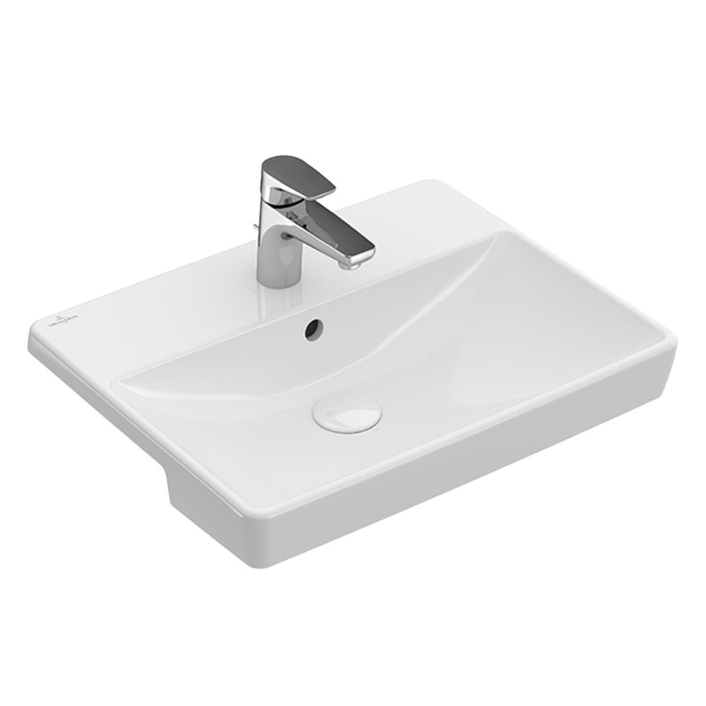 Villeroy & Boch Avento 550mm Rectangular Semi Recessed Basin with Overflow 1 Tap Hole Alpine White