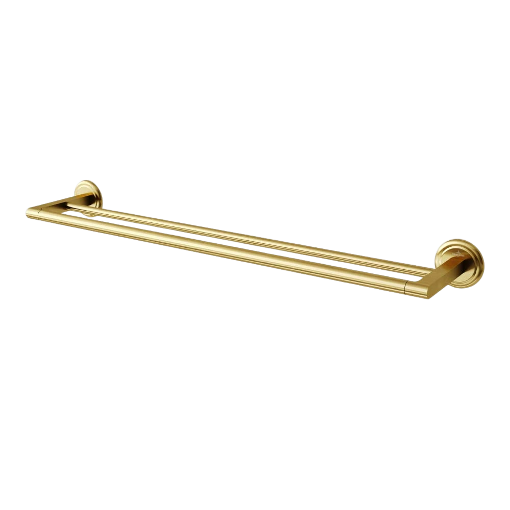 The Avia 2.0 Double Towel Rail in warm Brushed Gold blends functionality and sophisticated design. This 600 mm double rail provides ample space for multiple towels, ideal for busy bathrooms... Read more