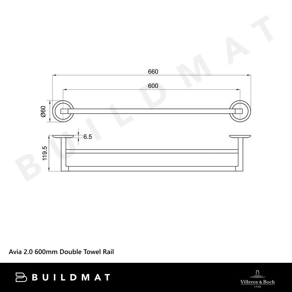 Villeroy & Boch Avia 2.0 600mm Double Towel Rail Brushed Gold