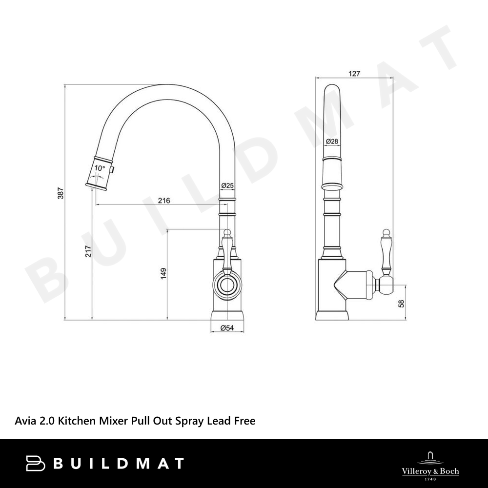 Villeroy & Boch Avia 2.0 Kitchen Mixer Pull Out Spray Chrome Lead Free