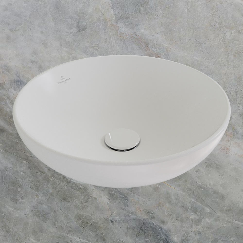 Villeroy & Boch Loop Slim 420mm Round Vessel Basin with Overflow Stone White