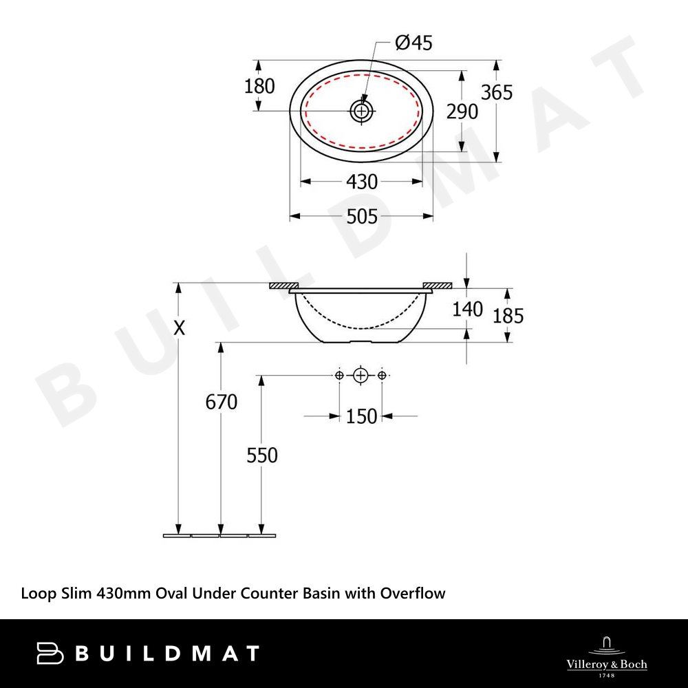 Villeroy & Boch Loop Slim 430mm Oval Under Counter Basin with Overflow Stone White