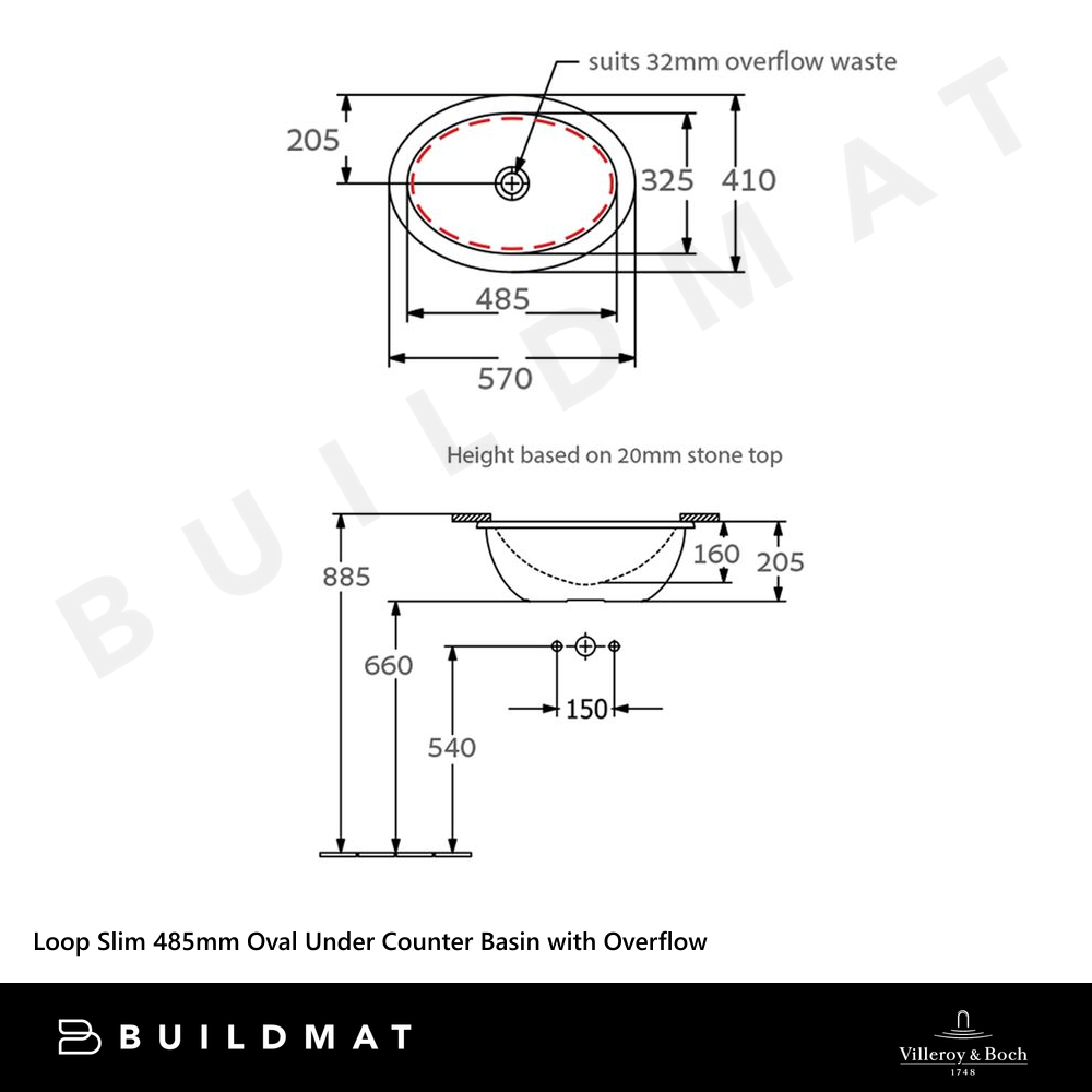 Villeroy & Boch Loop Slim 485mm Oval Under Counter Basin with Overflow Pure Black