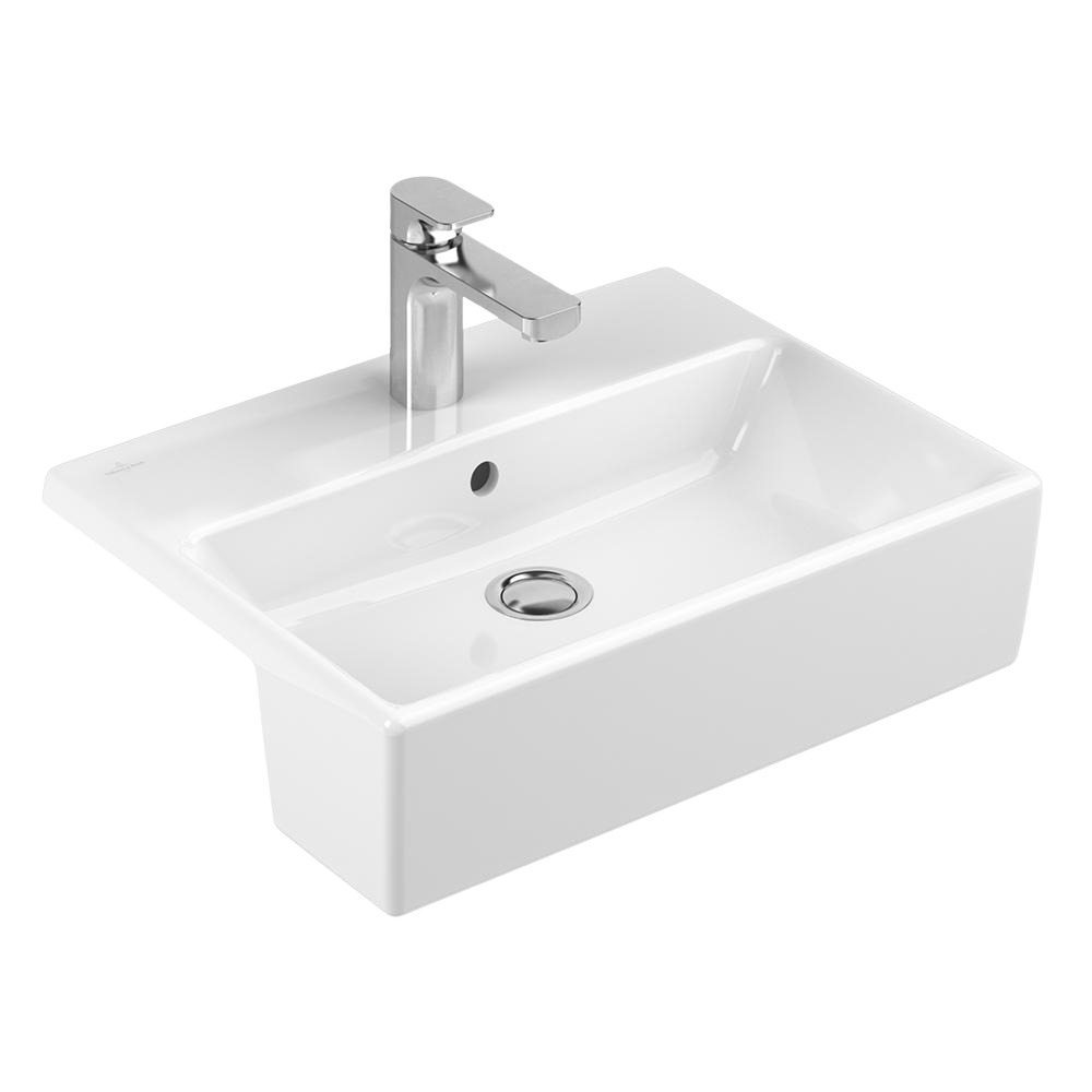 Villeroy & Boch Memento 550mm Rectangular Semi Recessed Basin with Overflow 1 Tap Hole Alpine White