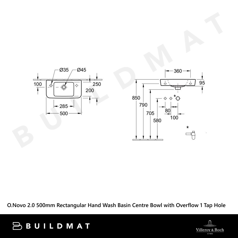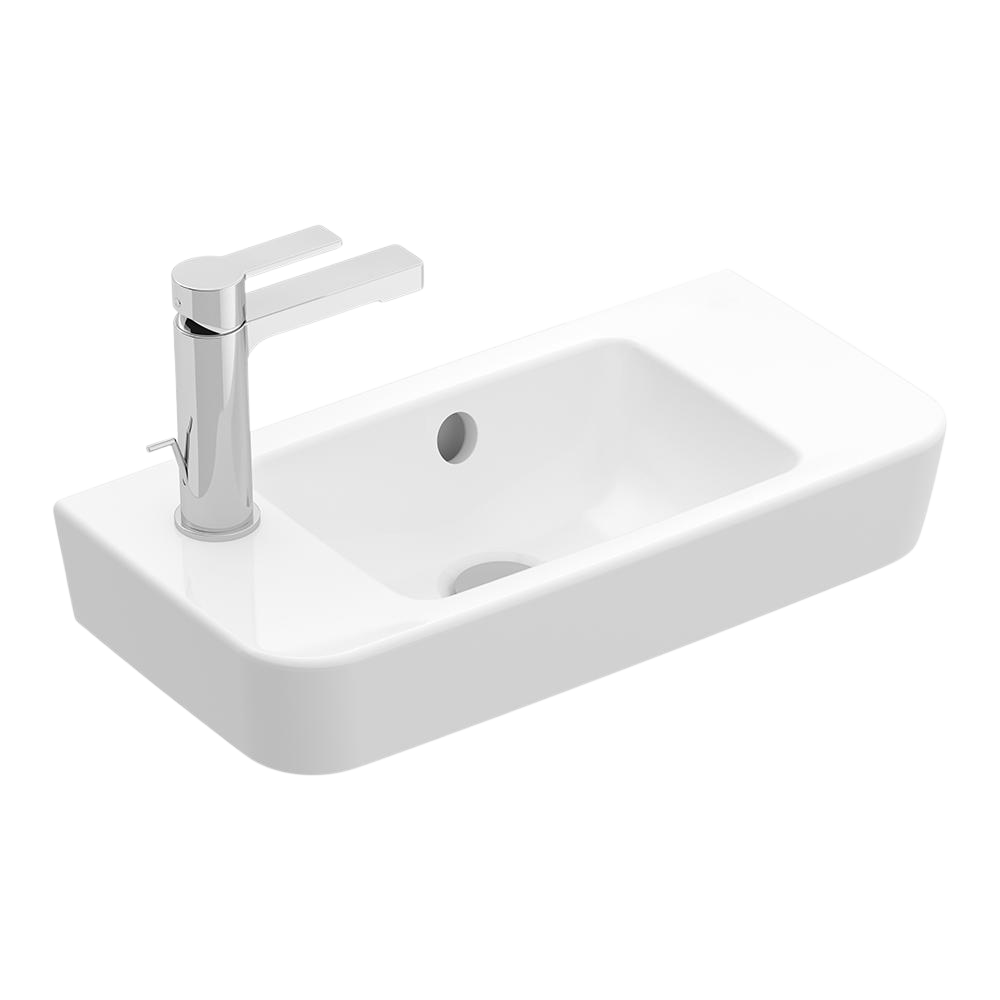 Villeroy & Boch O.Novo 2.0 500mm Rectangular Hand Wash Basin Centre Bowl with Overflow 1 Left Tap Hole Alpine White