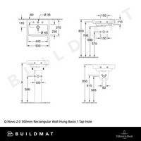 Villeroy & Boch O.Novo 2.0 500mm Rectangular Wall Hung Basin 1 Tap Hole Alpine White