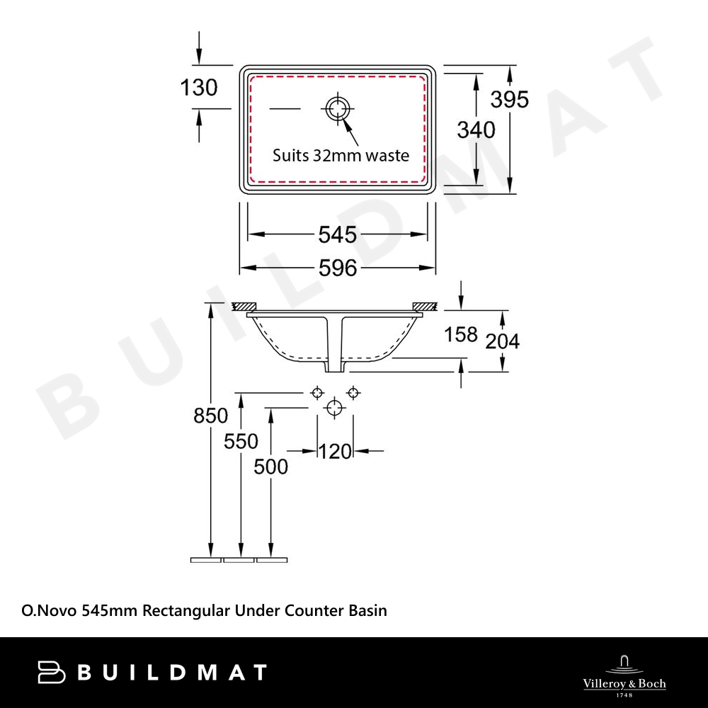 Villeroy & Boch O.Novo 545mm Rectangular Under Counter Basin Alpine White