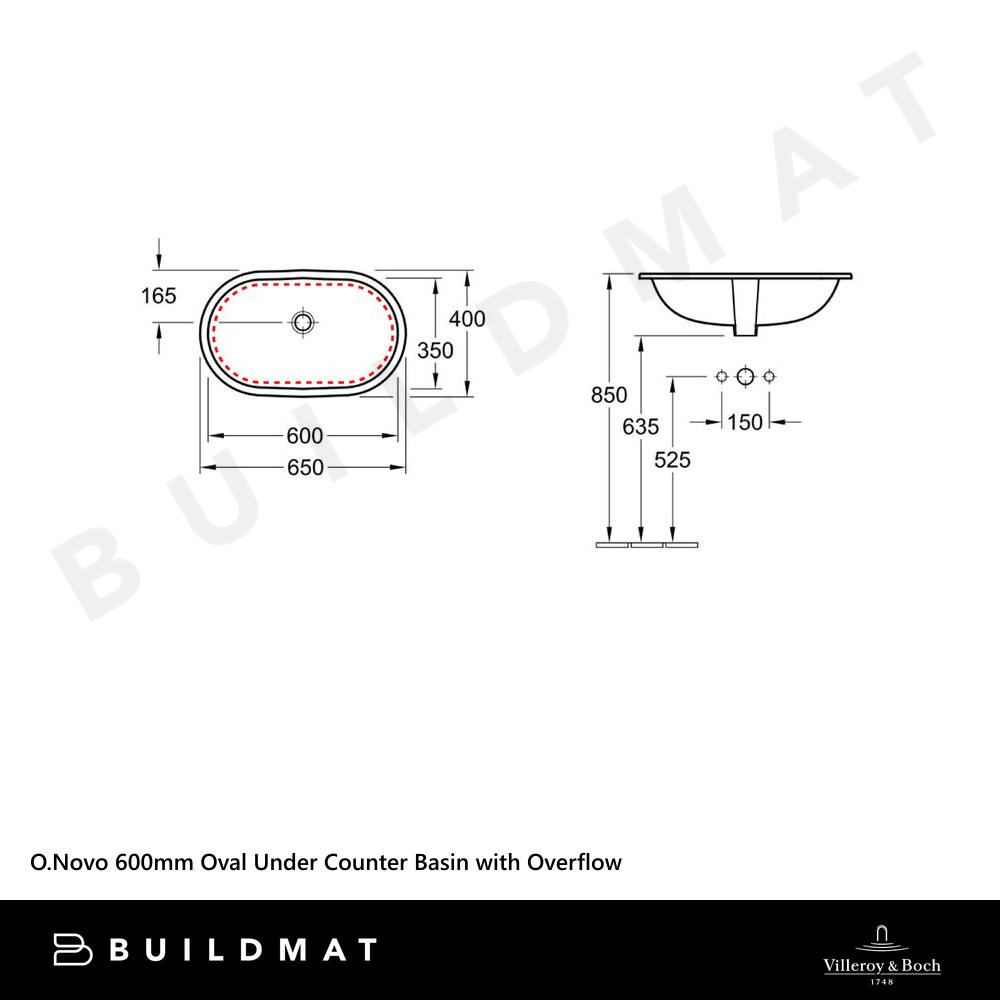Villeroy & Boch O.Novo 600mm Oval Under Counter Basin with Overflow Alpine White