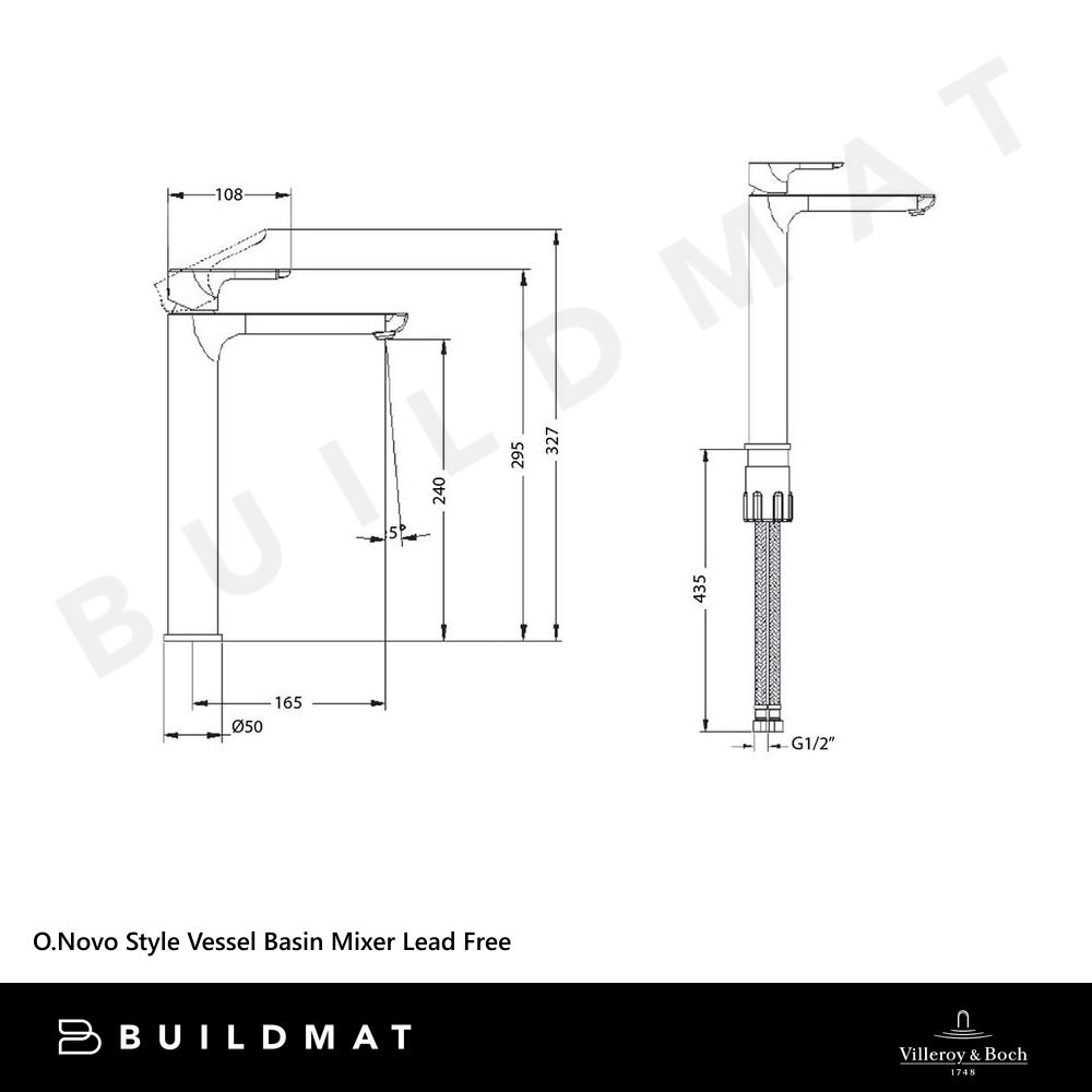 Villeroy & Boch O.Novo Style Vessel Basin Mixer Brushed Nickel Lead Free