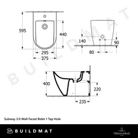 Villeroy & Boch Subway 3.0 Wall Faced Bidet 1 Tap Hole Alpine White