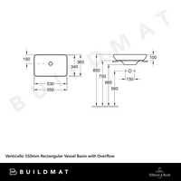 Villeroy & Boch Venticello 550mm Rectangular Vessel Basin with Overflow Alpine White
