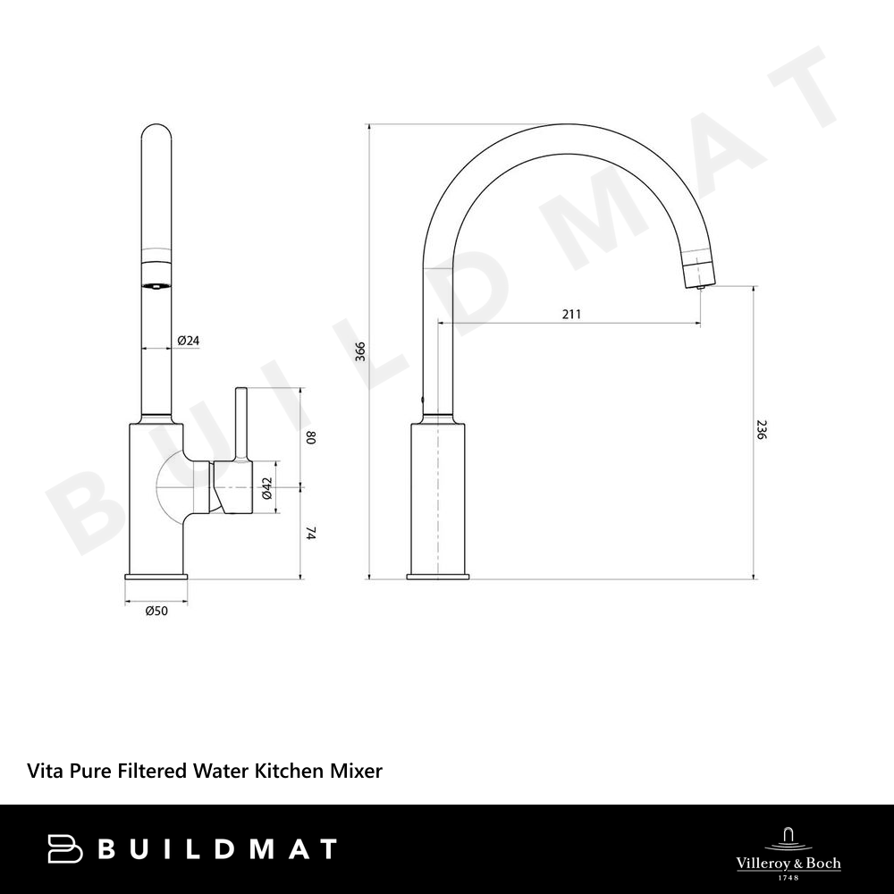 Villeroy & Boch Vita Pure Filtered Water Kitchen Mixer Brushed Nickel
