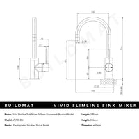 Phoenix Vivid Slimline Brushed Nickel Sink Mixer 160mm Gooseneck