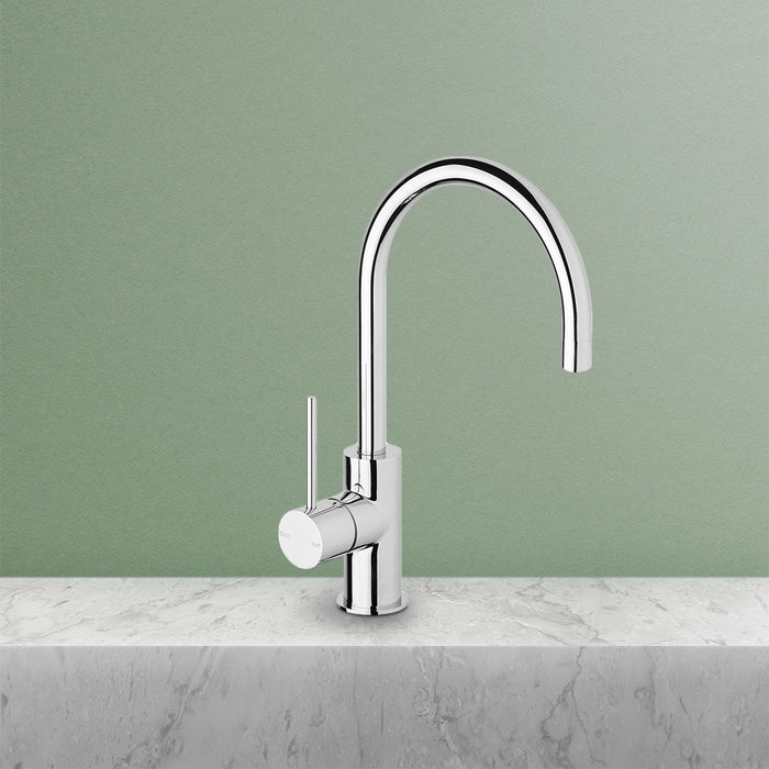 Bring flexibility and flair to your kitchen with the Vivid Slimline Sink Mixer Gooseneck. The 360° swivel spout lets you move with ease, making every kitchen task a breeze. Whether you’re multitasking or enjoying a streamlined workflow, this mixer’s all-around reach ensures nothing is out of bounds. It’s functional, stylish, and ready to keep up with your kitchen adventures.