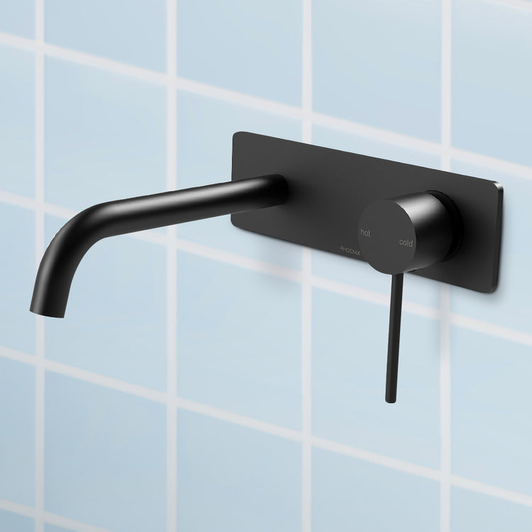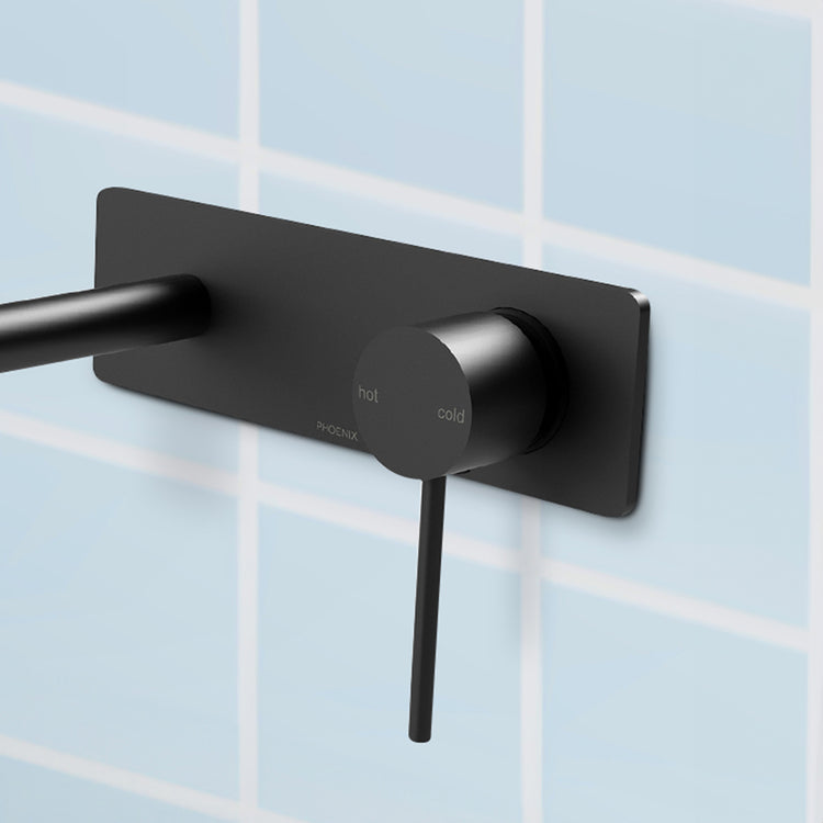 Phoenix Vivid Slimline SwitchMix Wall Basin/Bath Mixer Set 180mm (Fit-Off Kit) Lead Free Matte Black