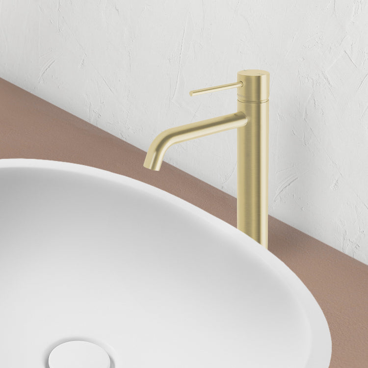 Looking to upgrade your space with a mixer that matches the height and elegance of your above-counter basin? The Vivid Slimline Vessel Mixer with Curved Outlet is the one. Featuring an extended body height, this mixer is designed to make a statement. It’s the perfect companion for your stylish basin, offering both form and function.