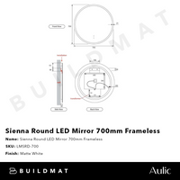 Aulic Sienna Round LED Mirror 700mm Frameless