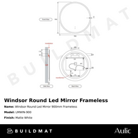 Aulic Windsor Round LED Mirror 900mm Frameless