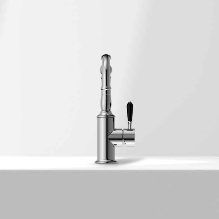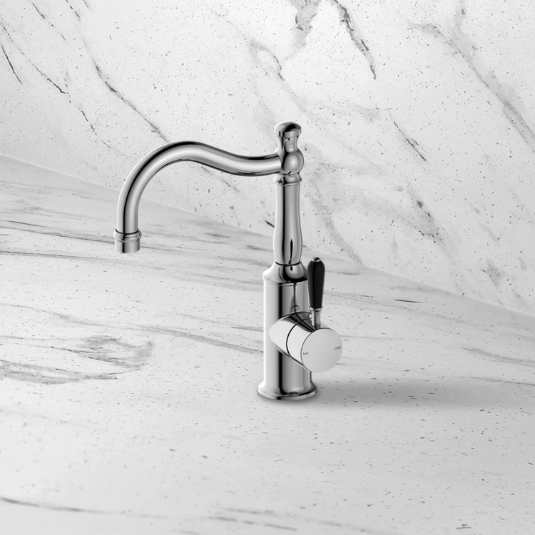 Nero York Basin Mixer Hook Spout with Black Porcelain Lever Chrome