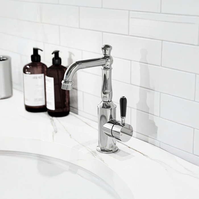 Nero York Basin Mixer with Black Porcelain Lever Chrome