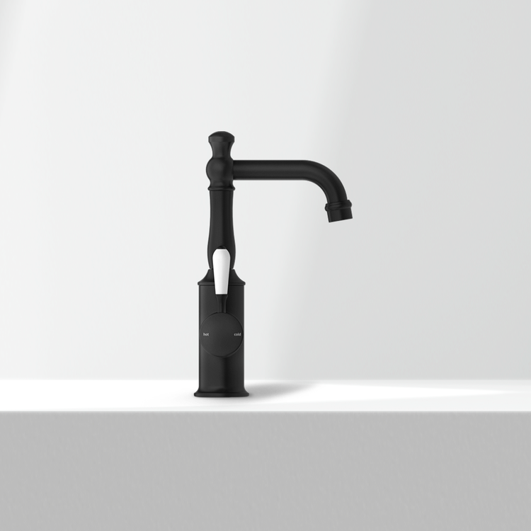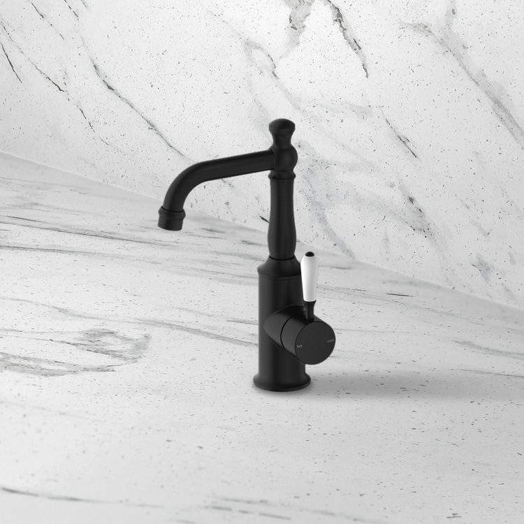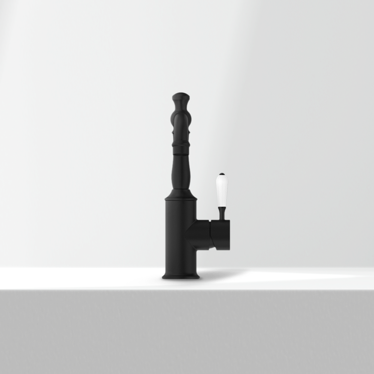 Nero York Basin Mixer with White Porcelain Lever Matte Black