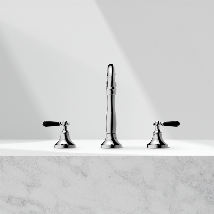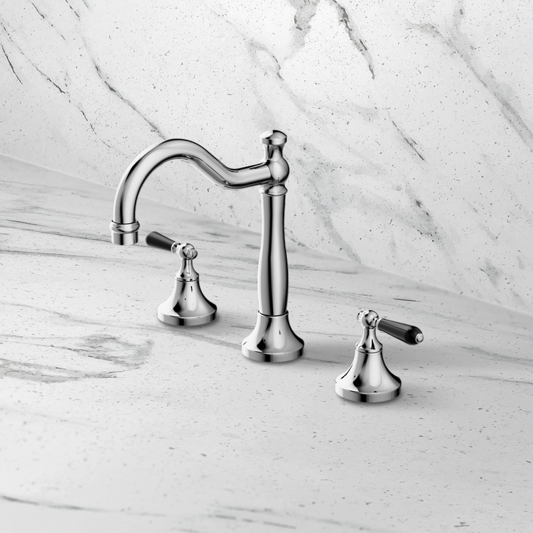 Nero York Basin Set With Black Porcelain Lever Chrome
