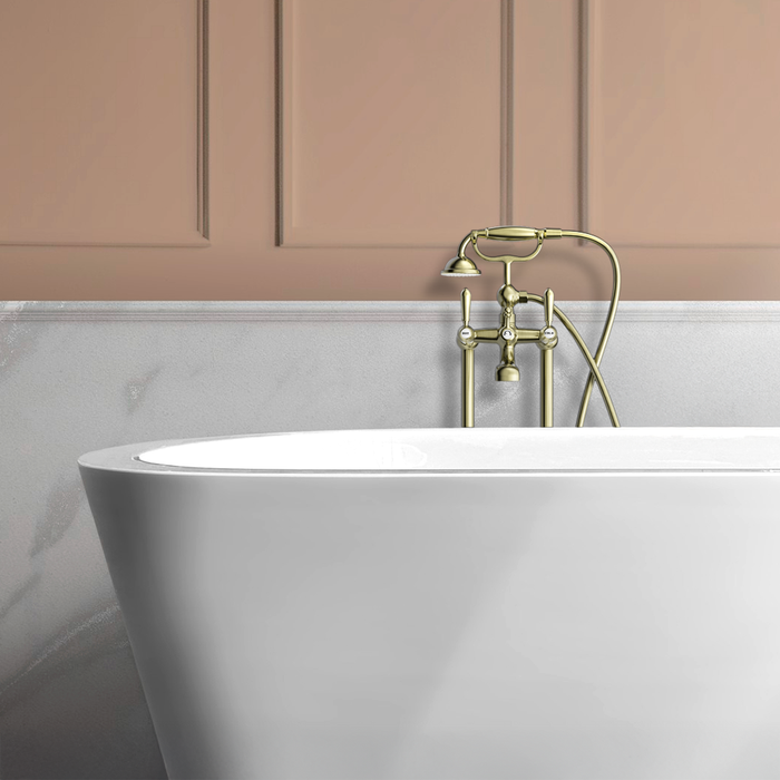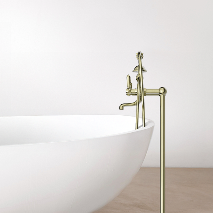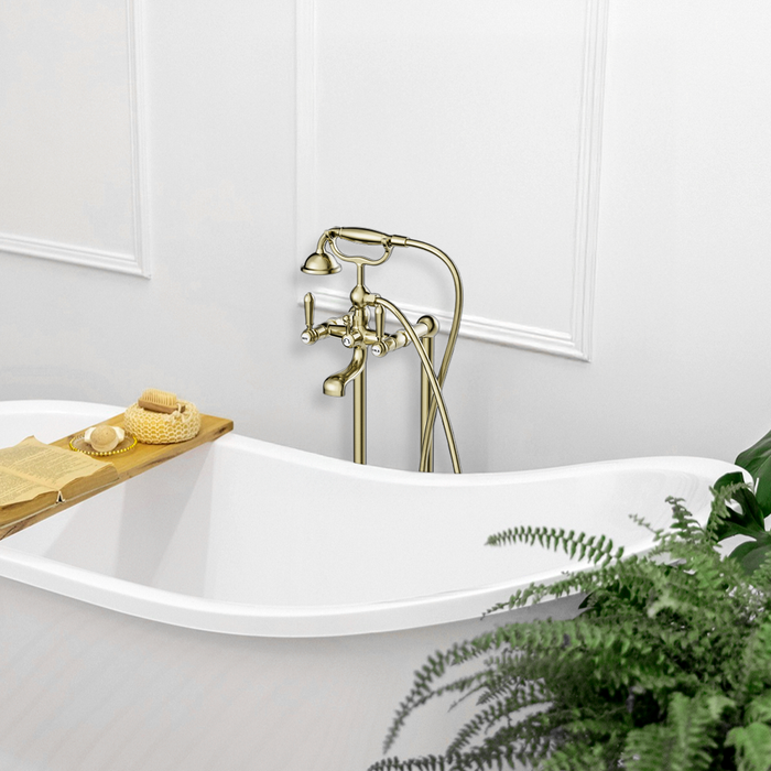 Nero York Freestanding Bath Mixer With Metal Hand Shower Aged Brass