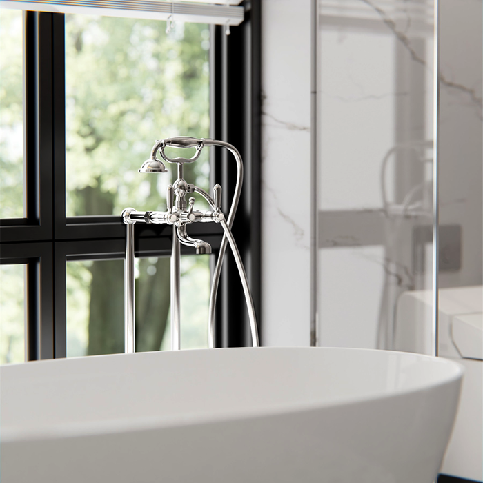 Nero York Freestanding Bath Mixer With Metal Hand Shower Chrome