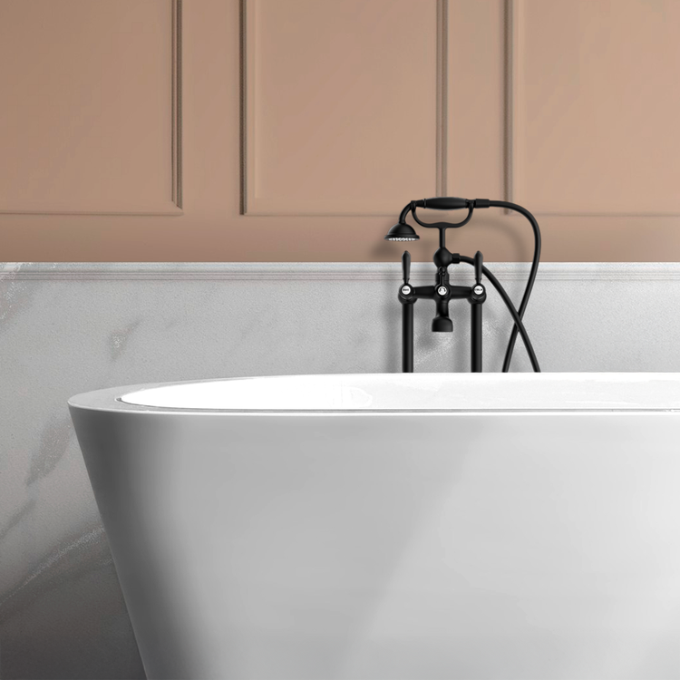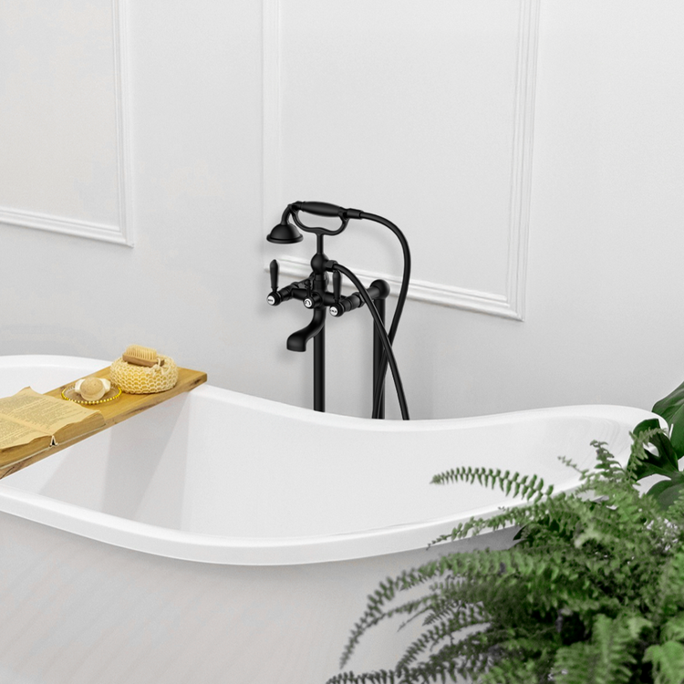 Nero York Freestanding Bath Mixer With Metal Hand Shower Matte Black