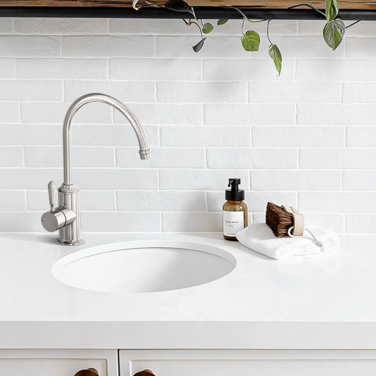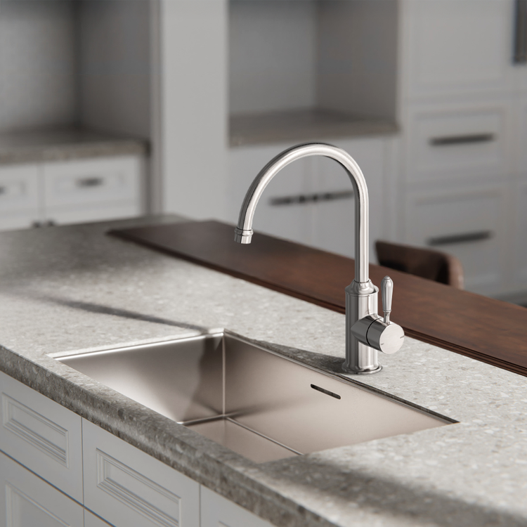 Nero York Kitchen Mixer Gooseneck Spout with Metal Lever Brushed Nickel