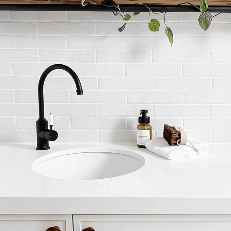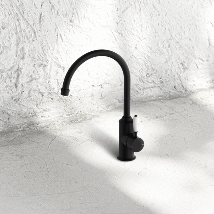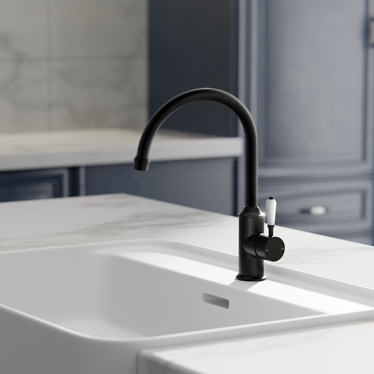 Nero York Kitchen Mixer Gooseneck Spout with White Porcelain Lever Matte Black