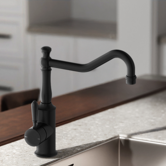 Nero York Kitchen Mixer Hook Spout with Metal Lever Matte Black