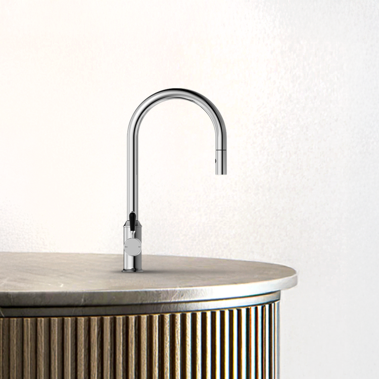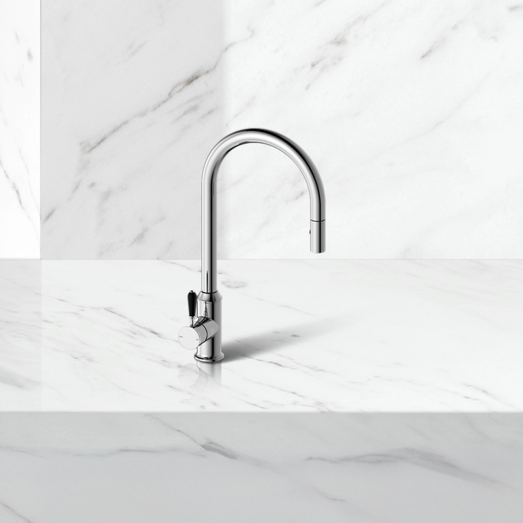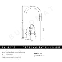 Nero York Pull Out Sink Mixer with Vegie Spray Function with Black Porcelain Lever Chrome