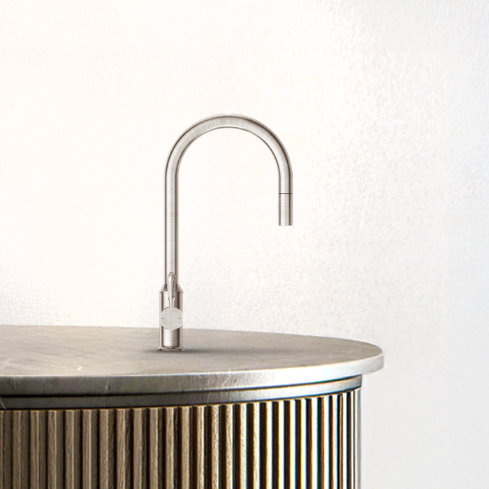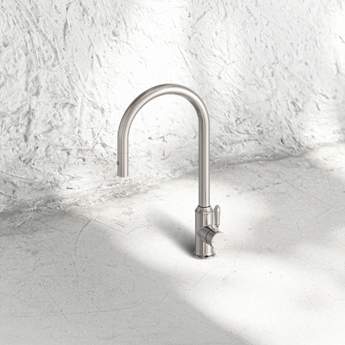 Nero York Pull Out Sink Mixer with Vegie Spray Function with Metal Lever Brushed Nickel