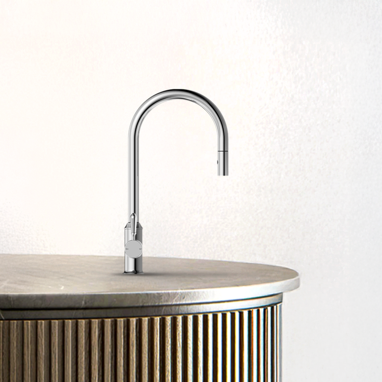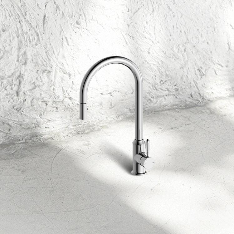 Nero York Pull Out Sink Mixer with Vegie Spray Function with Metal Lever Chrome