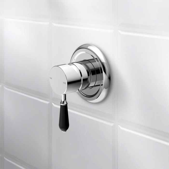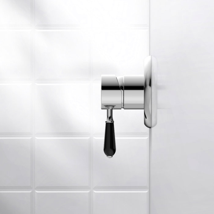 Nero York Shower Mixer with Black Porcelain Lever Chrome