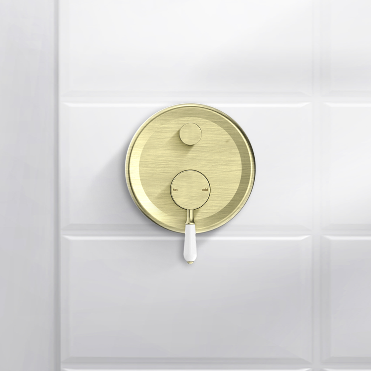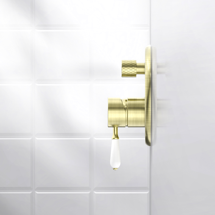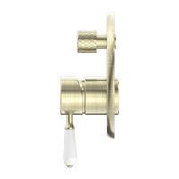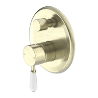 Nero York Shower Mixer with Divertor with White Porcelain Lever Aged Brass