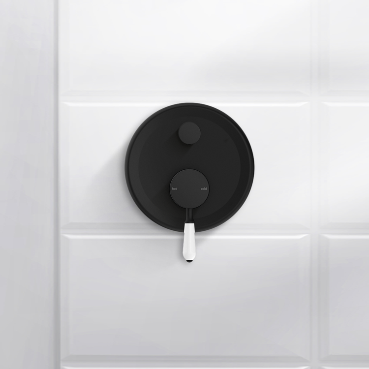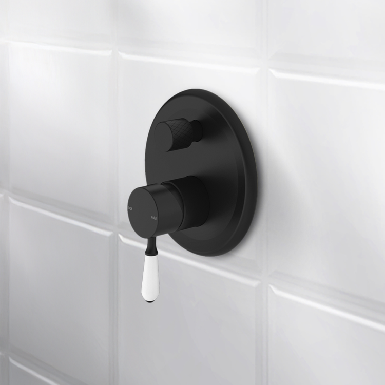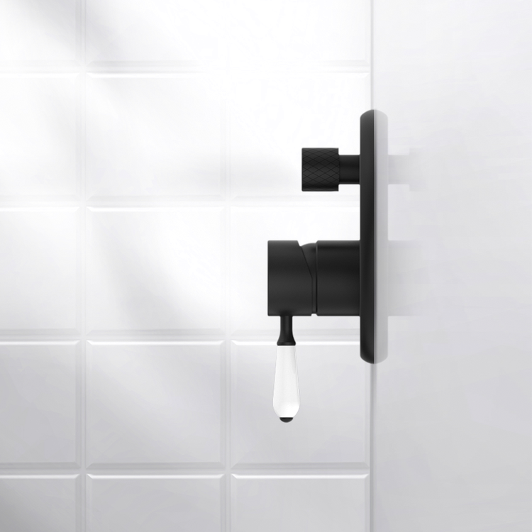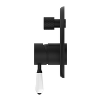 Nero York Shower Mixer with Divertor with White Porcelain Lever Matte Black