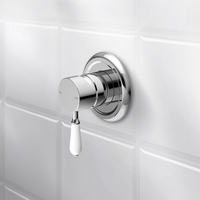 Nero York Shower Mixer with White Porcelain Lever Chrome