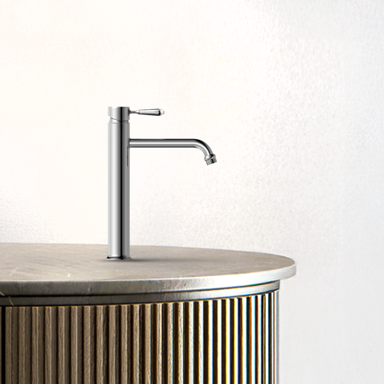 Nero York Straight Tall Basin Mixer With Metal Lever Chrome